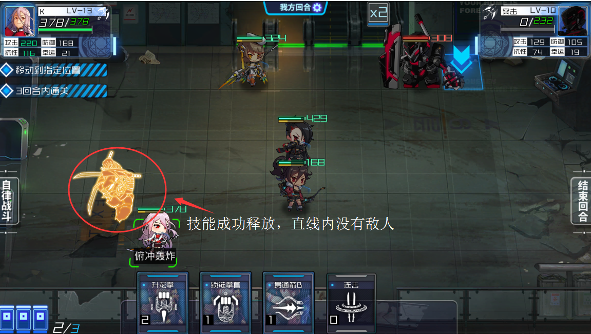 ①技能的使用应当在角色在普通攻击之后,因为先行使用技能会导致角色无法移动,相当于结束了角色的回合;