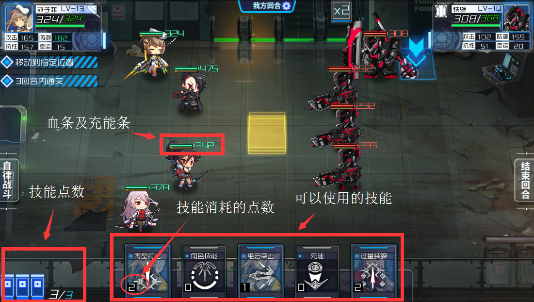 技能点数:每一回合都会获得3个点数,上限为3,在下一个回合会自动补满。就是说,你不用也不会叠加,最好单回合就全部使用。