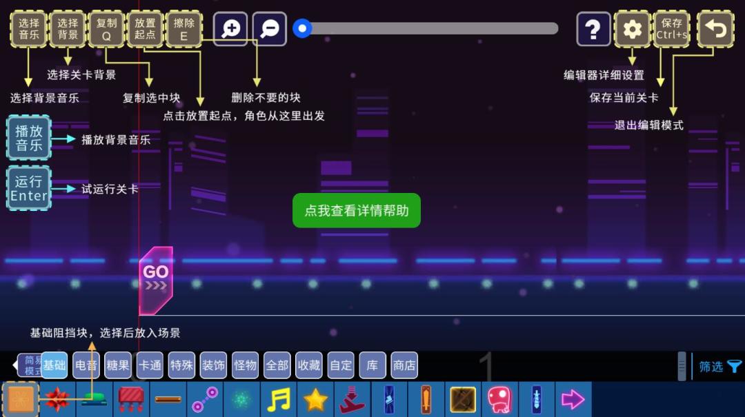 不管惊险刺激的关卡,还是百变不一的风格,亦或是经典的抖音神曲配乐,所有的这些你想要的,都可以在【关卡编辑器】中实现。今天小编就先来给各位创造者们,介绍一下编辑的功能。(强行鼓掌十分钟)
