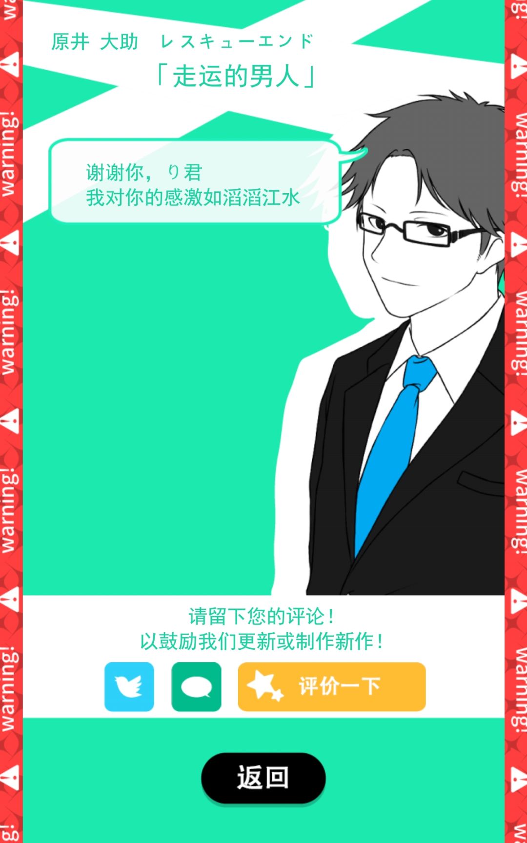 第一个也是唯一一个第一次就打出HE的,以后就不会发那么过分的短信了吧,He超幸福