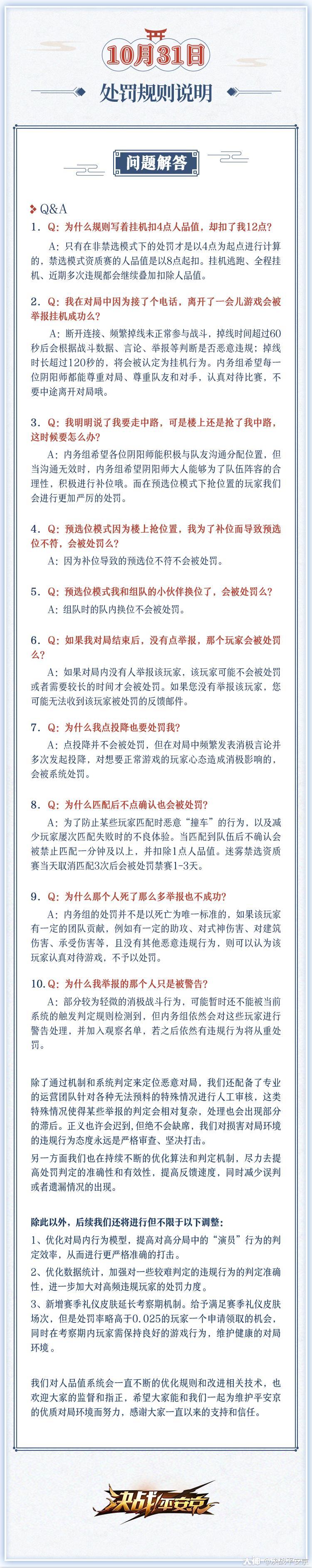 特别感谢大大们一直以来为平安京良好对局环境做出的努力,内务组也会不断优化和改善对局体验的,也希望之后和大家一起守护平安京吧!
