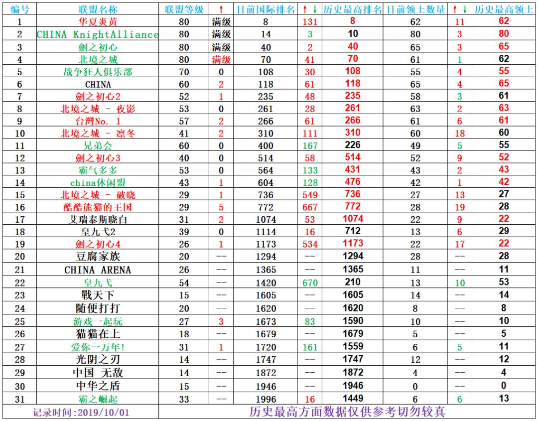 【皇家起义2】国人联盟排名-2019.10.01