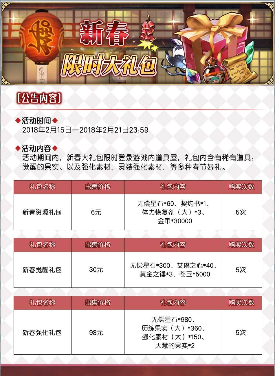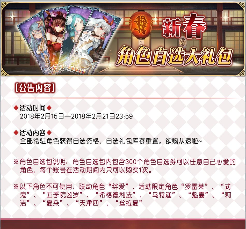 ◇ 新年角色自选大礼包重置