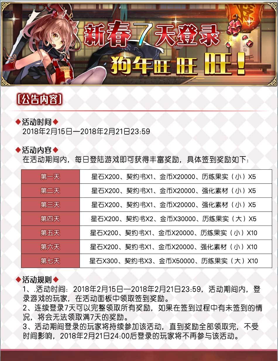 ◇ 新春7天登录,狗年旺旺旺!