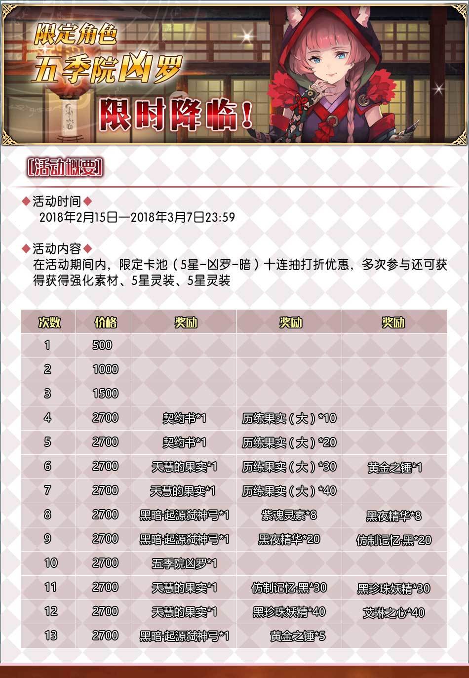 ◇ 五季院凶罗限时降临