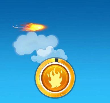 扔出去标枪后,我们会看到中间有个火焰标志,那个就是“燃料”。通过点击燃料,我们可以操控标枪在空中的运动轨迹和增加标的飞行速度!