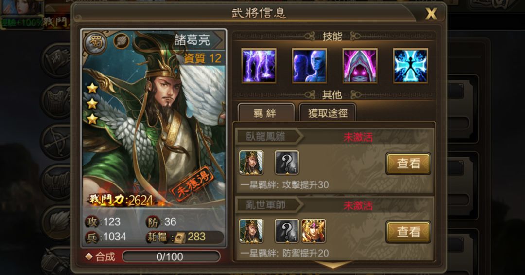 有「臥龍」美名的諸葛亮,是成就蜀國的重要功臣,不但上知天文、下知地理,更具機智冷靜的判斷力,引導友軍邁向勝利的關鍵!技能「呼風喚雨」每秒造成敵方全體傷害,並附加冰凍效果;習得「緩兵之計」後,每一次攻擊都有機率降低對手攻擊速度與移動速度,敵軍跑不快,我方在戰場上就更添優勢!