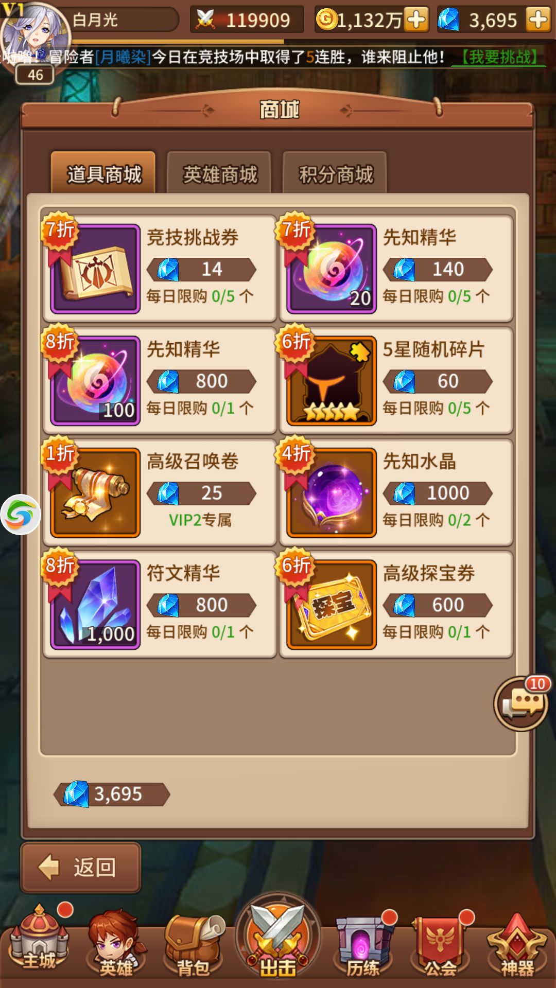 先知水晶可以在精灵商店2折500钻石(因为刷新几率较低,所以在下没有出的图片,望见谅(๑• . •๑))和商城1000进行购买。