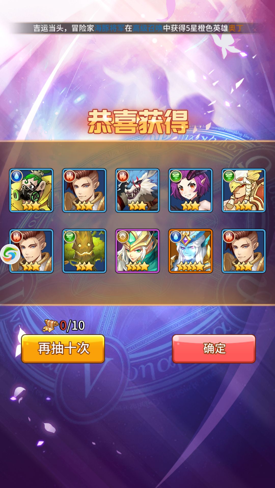 第一次10连是必出5星的,因为闪烁之光抽奖的保底是需要v3才能用的积分扭蛋,所以低v玩家建议最多2次10连!毕竟抽奖出5星的几率真的看脸,剩下了的钻石建议等玩家角色30级开启先知圣殿以后在买先知之心来出5星卡。