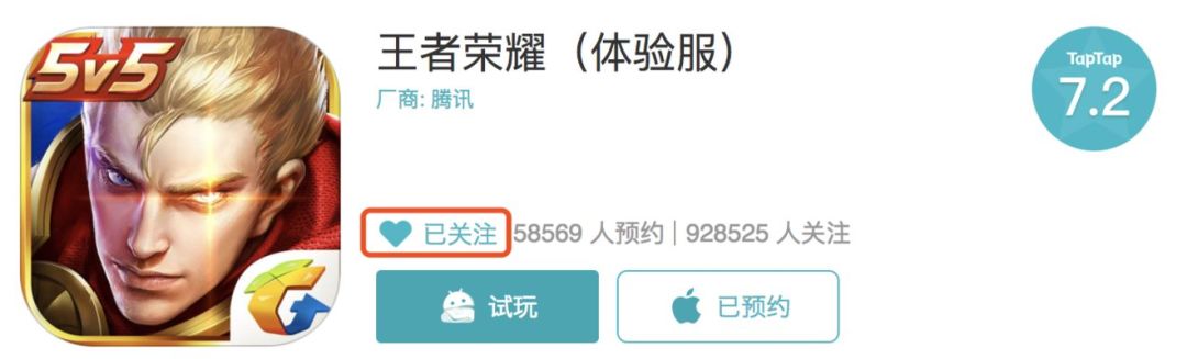 1.搜索《王者荣耀》体验服,点击关注游戏
