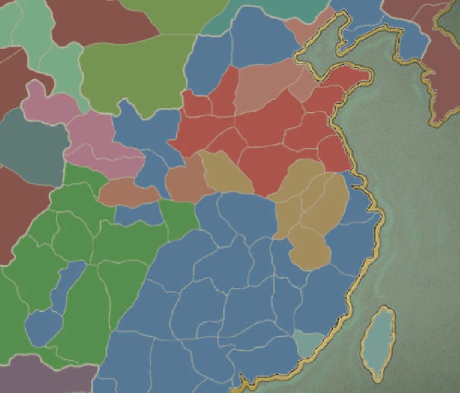 张角邻国为黑山,东汉以及其余黄巾势力,周围有九江,河间两座商业城市,其中河间属于黑山势力,前期比较容易吞并,所以经济是不用担心的。