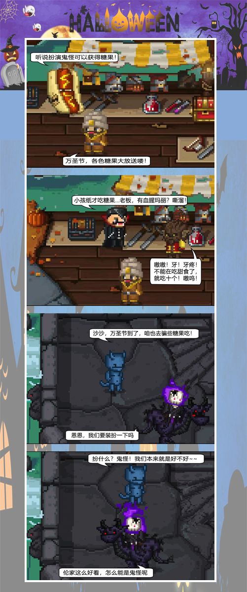 嘿呀,比特大陆终于迎来了一年一度的万圣节,看完下面的精彩漫画各位骑士or勇者是不是也蠢蠢欲动呢,嘿嘿嘿,“晴颜”(木歌宠向的姐妹)特地准备了一个万圣节小活动,看完漫画一起跟我看看吧~