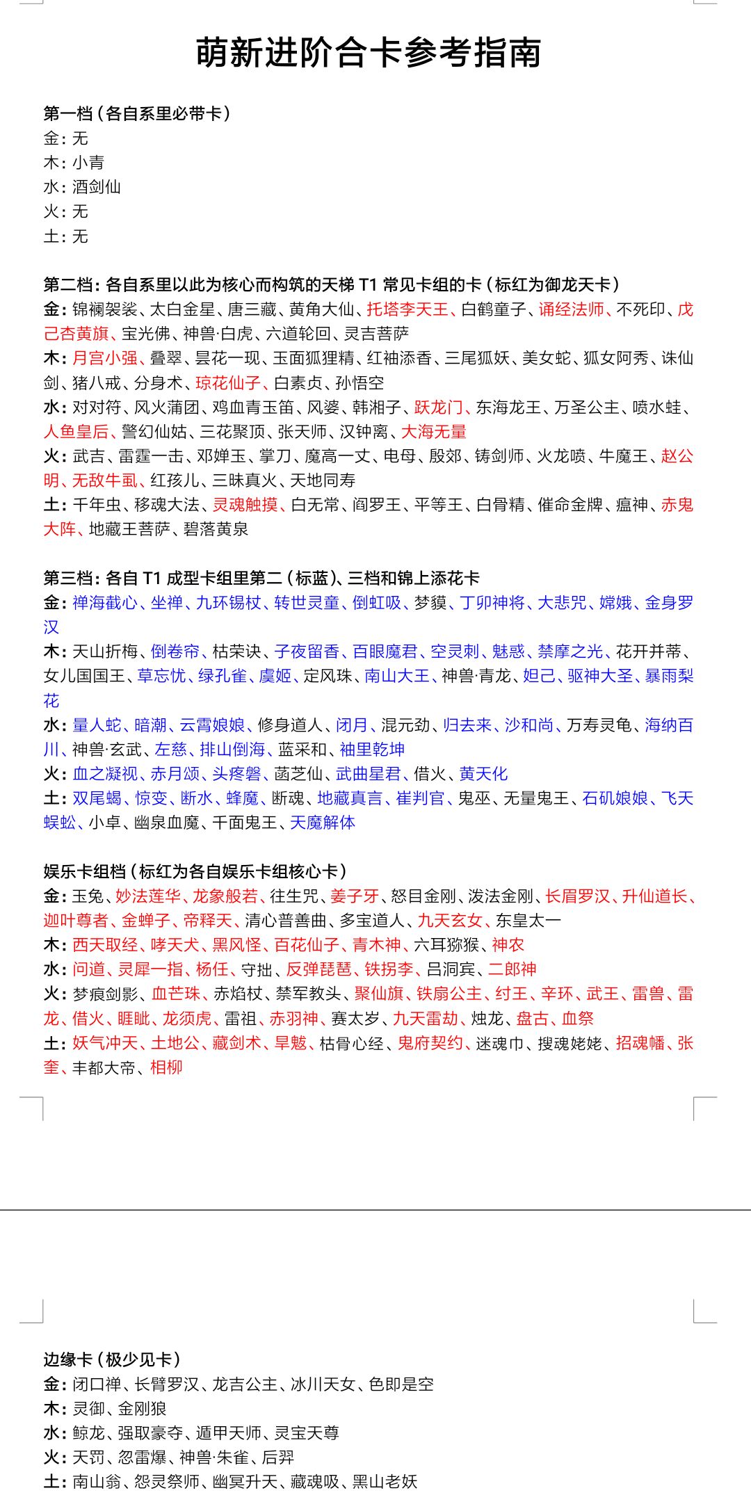 萌新合卡参考指南(天卡)