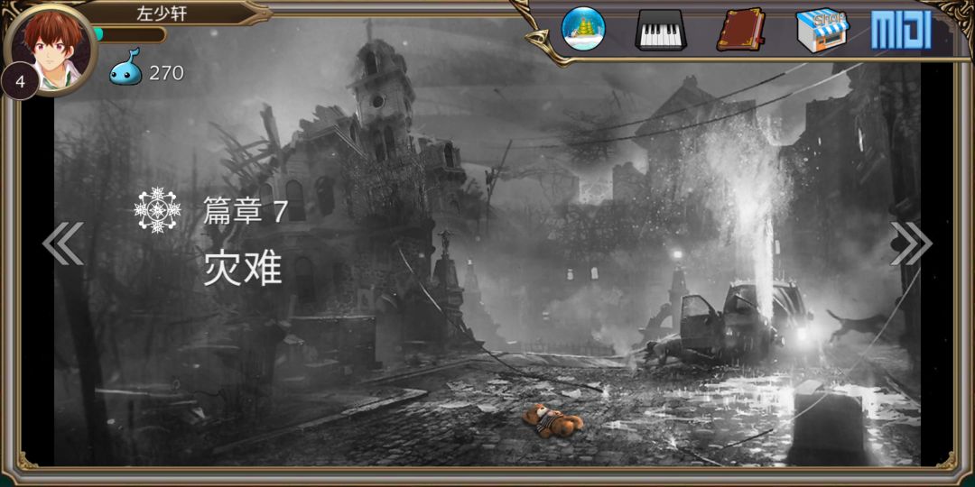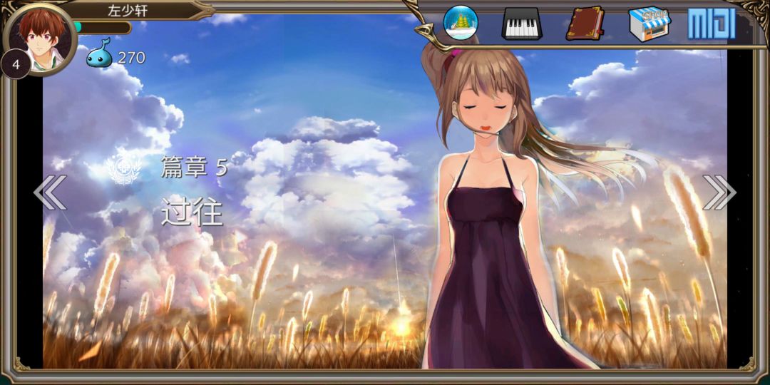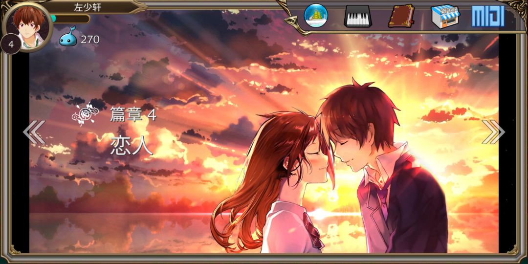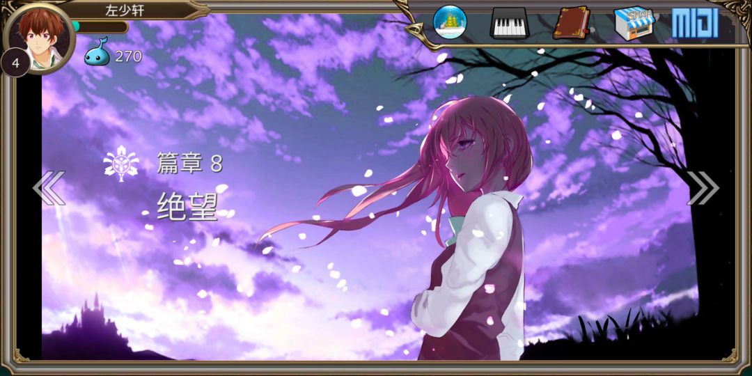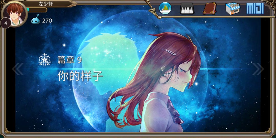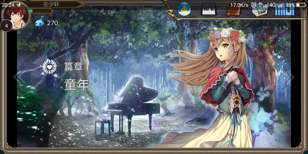 话说,这个论坛没有人?这个游戏类似于钢琴键,不过它以一般音游的界面显示的,全游戏有十个章节,每个章节大约7-10首歌。表示它是用音乐来讲述一对恋人从童年到生离死别。不过手感不是特别好!