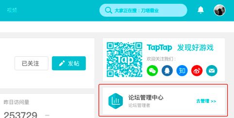 我们将之前的多个管理入口合并,新入口展示在web端论坛的右侧,之后大家只用点一个入口就能快速进入论坛管理进行操作了。如图: