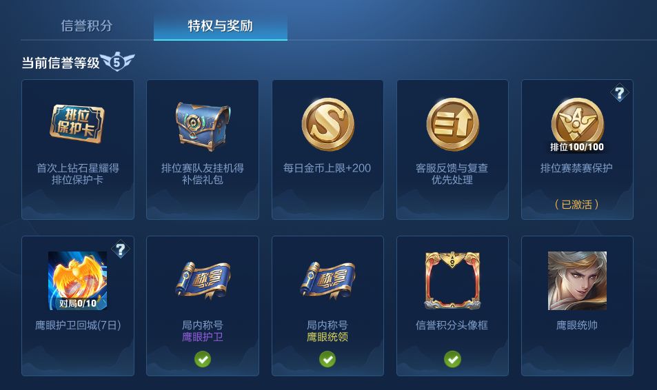 (二) 信誉等级5星及以上增加排位赛禁赛保护特权