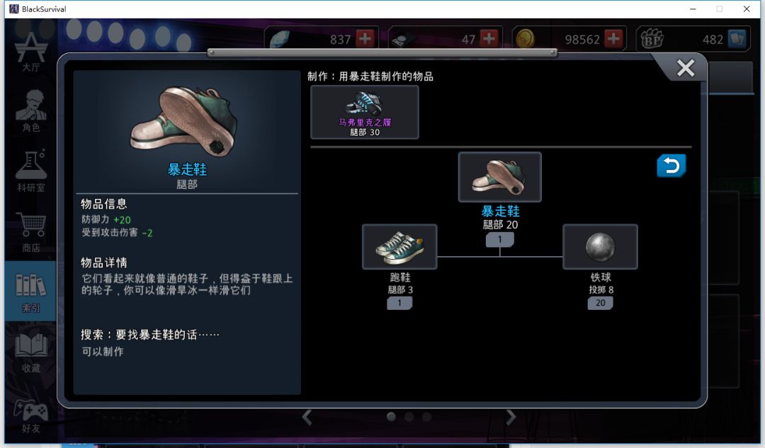 转小巷:1鞋子1钢链1针,如果觉得教堂药不够这里可以顺手摸泡面,顺便可以摸玻璃杯即时回耐(MamYy教堂开的通病就是缺耐,这个只能靠玩家自己补充)铁球在合成完鞋子后就可以丢了,如果摸到废铁也可以顺手带着。