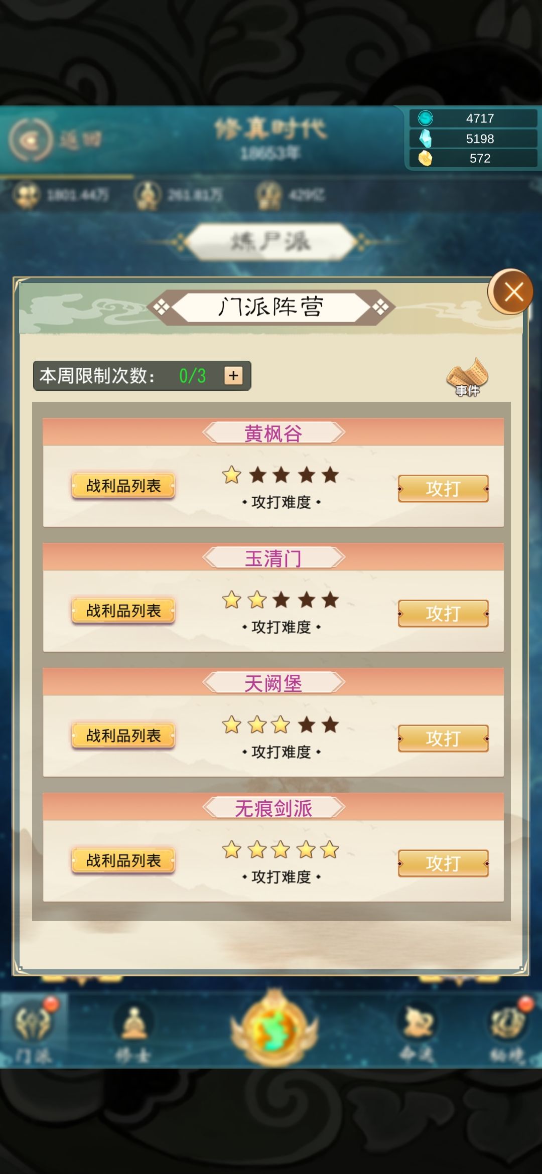 这个攻打门派,从我昨天开始就不给我刷新,我一开始还以为是我自己打过了