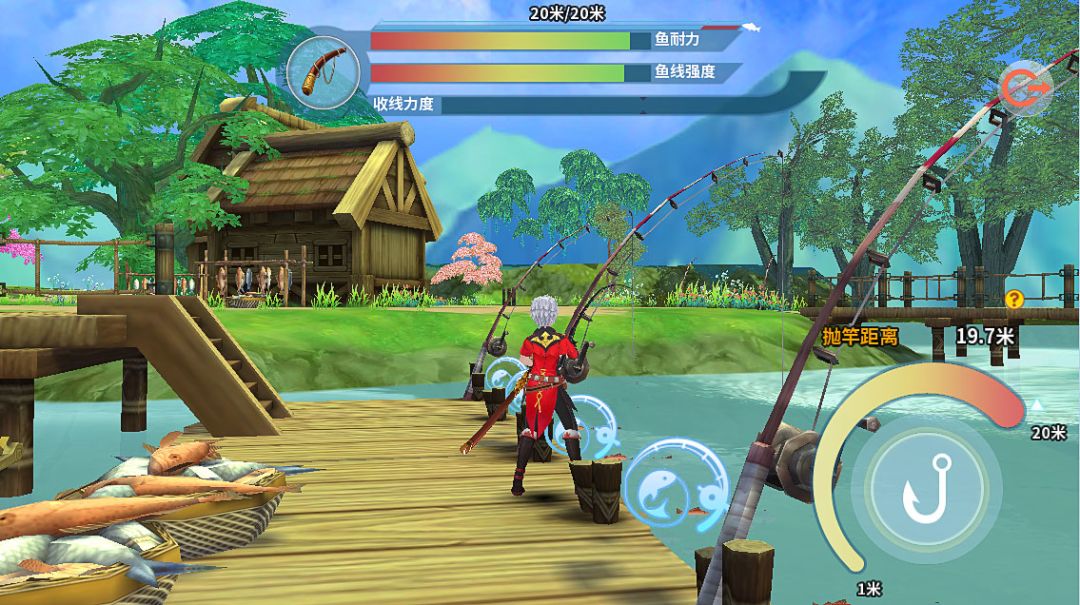 1. 首先,你需要抛竿。游标会在不同的距离间上下跳动,瞅准时机点击垂钓按钮,游标停止的地方即是你抛竿的距离。