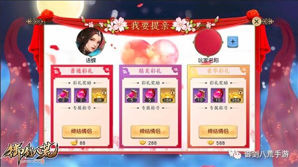 如果对方不同意,会自动退回彩礼,如果对方接受你的求婚,那么恭喜你们!成功结为仙侣!