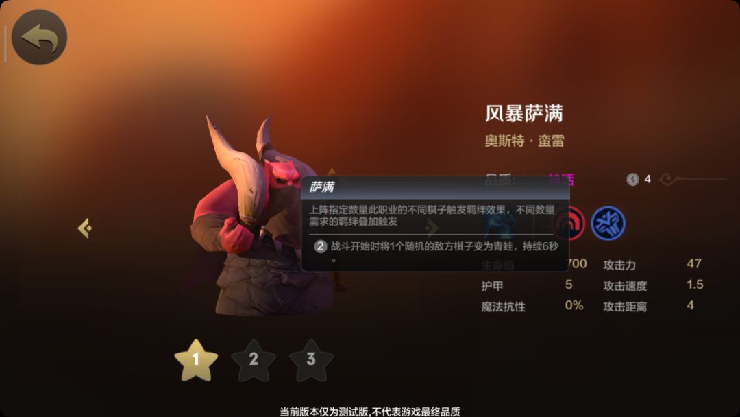 萨满一族只要凑齐两个就可以触发非常特殊的机制,开局就可以让一个敌人变呱。但是本身萨满只是一个控制,带双萨满还是需求冰川一族(提高攻速,更快让敌人变呱,前期培养蝙蝠骑士的作用与目的)