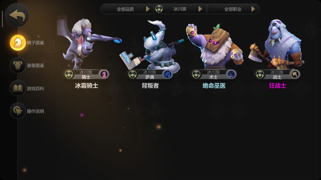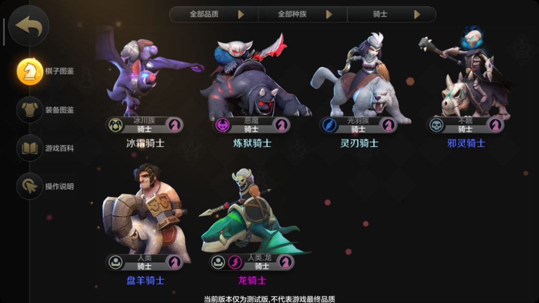 中排:灵刃骑士、龙骑士、冰霜骑士、暗影魔王、灵魂收割者