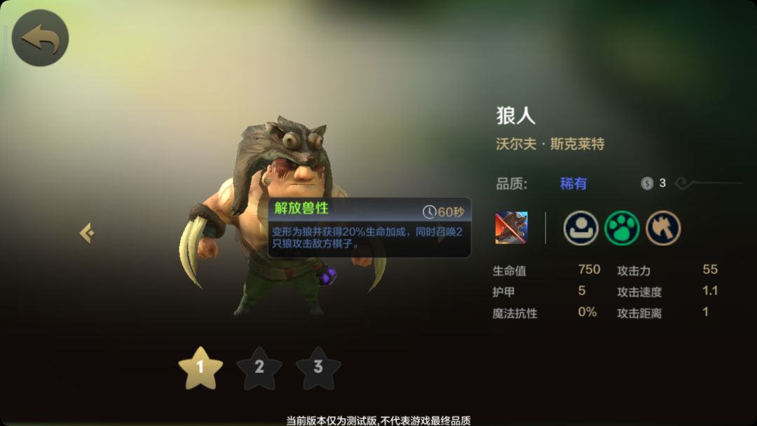 狼人在两星后的表现非常优异,而利爪德鲁伊缺点在于难成型三星;配合本家野兽的buff将是恐怖的野兽军团。