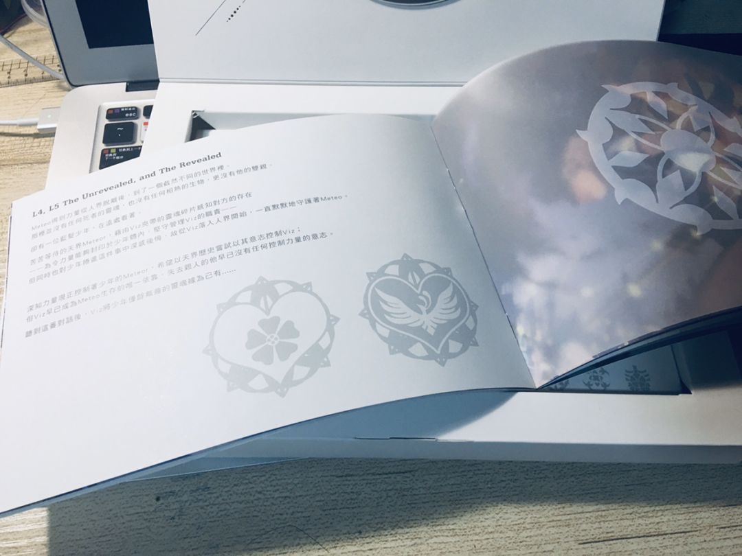 专辑下面呢,就是歌词本(?)辣!因为没有歌词就叫曲绘本叭ΦωΦ,曲绘本由曲绘,剧情,硫酸纸曲目logo构成