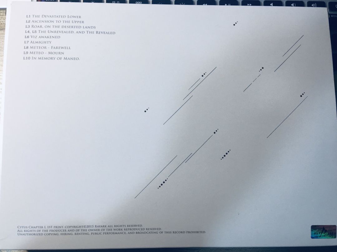 首先,L章的外包装为纯纸质(好脆弱的样子),封面印有cytus L章的logo、cytus和ice字样。