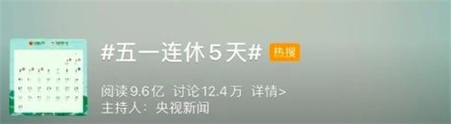 “五一”放假安排一出炉,自五天假期立刻冲上热搜,