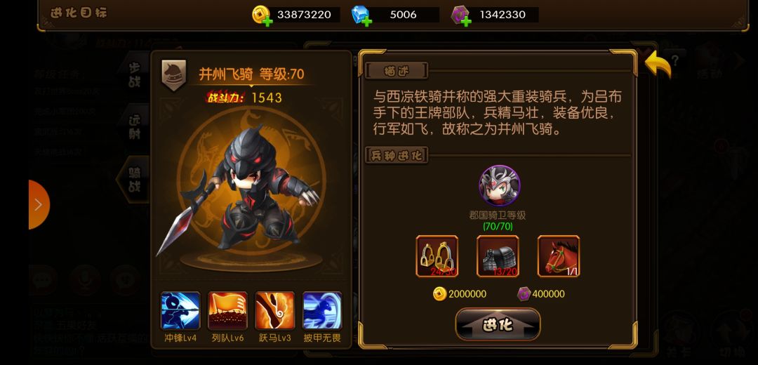 兵种进化材料关卡次数用完后就是武将橙色强化材料关卡,不建议买次数,毕竟产出率比较低。