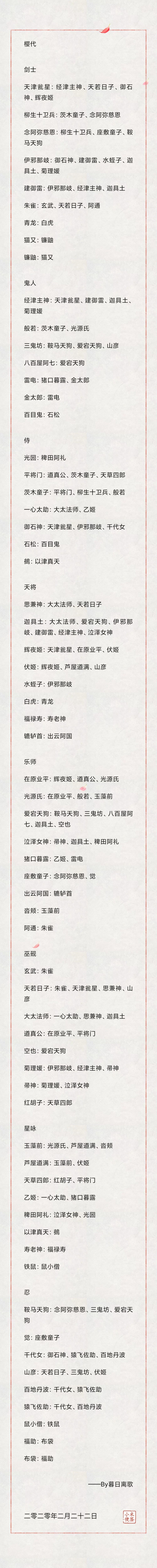 目前已实装樱代角色万杰传承一览,随后续更新。