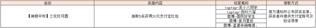 【公告】[中奖名单]【神厨中秋】之花好月圆