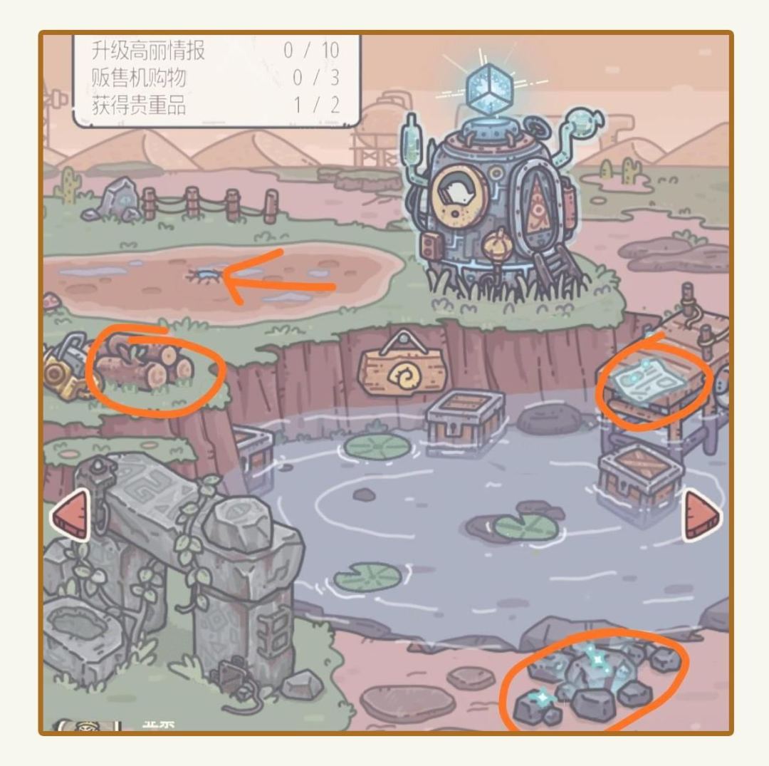 1.地图左边箭头指着的那块石头是彩蛋,需要点999下,可以下载个连点器点,会给金手指(橙贵重)