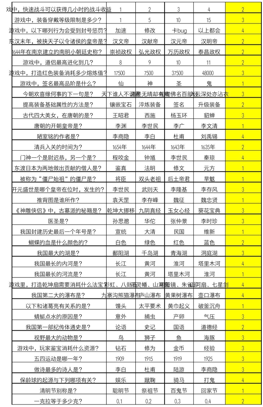因为此资源年代久远,许多新加上的题目不会出现在上面,所以楼主会在玩仙侠第一放置的时候把我碰到过点没出现的题目的答案写在评论区,同时也希望看到此贴的同志们提出问题和添加答案,谢谢!