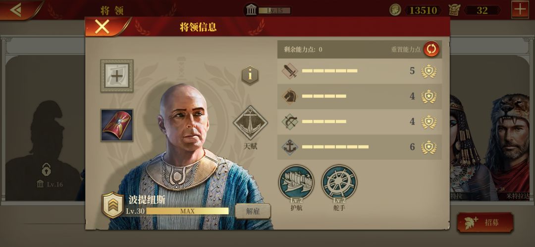 2. 有助于打仗的加点推荐。不要点副点一直留着点能力点最高的一项。点满以后全点在海军。在点满再随意点别的。