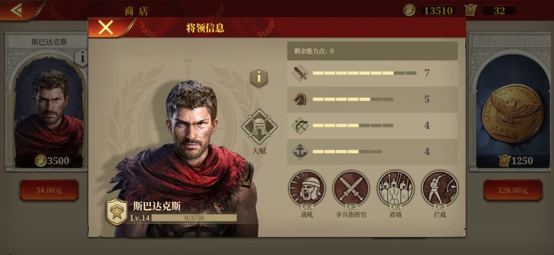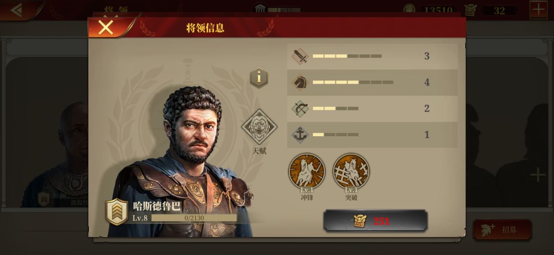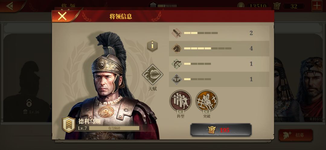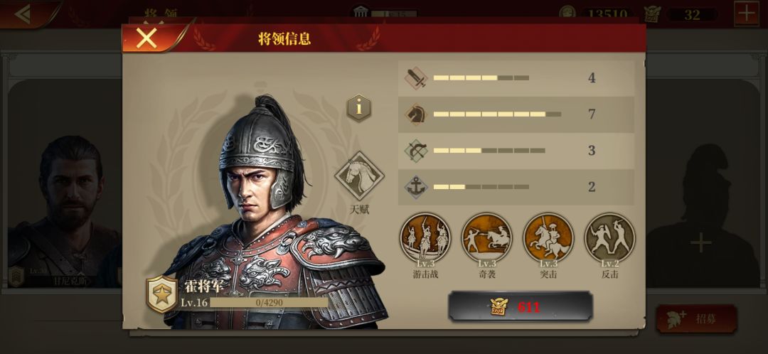 其余的步兵将领都不太行,但是可选庞贝和维钦托利。因为步兵主动攻击能力弱,主要靠防守。维钦托利看着厉害,经实验被动提升很小。建议就用最前面的低级将领,甘尼克斯就极其实惠很耐用。勋章溢出再买维钦托利,庞贝。