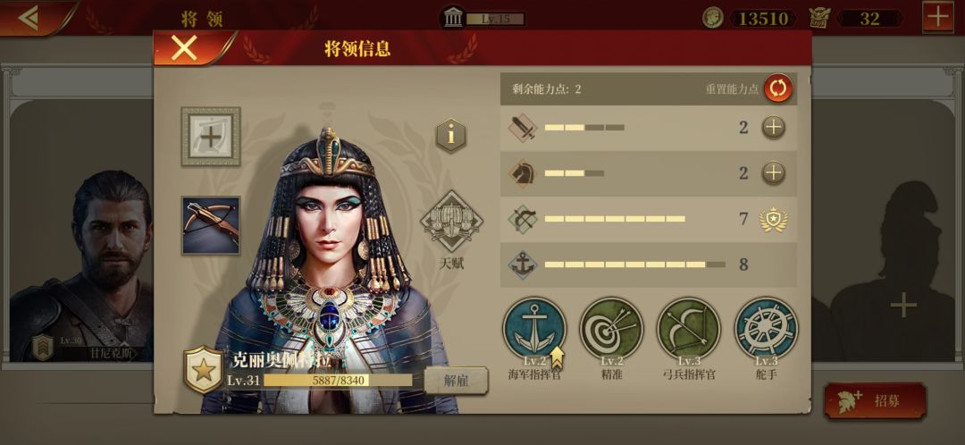中价将领唯一推荐。性价比之王。海军射手女***里奥佩特拉。不要买低价射手将领。等钱买女王。