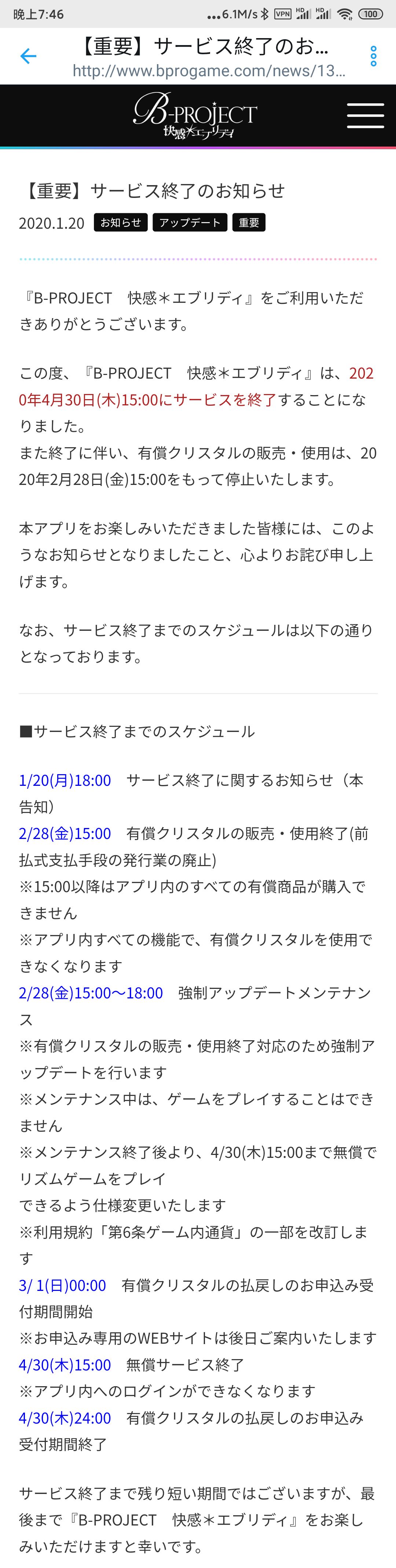尽管到运营结束为止的时间很短,但我们希望您可以享受“B-PROJECT 快感*エブリディ”直到结束。