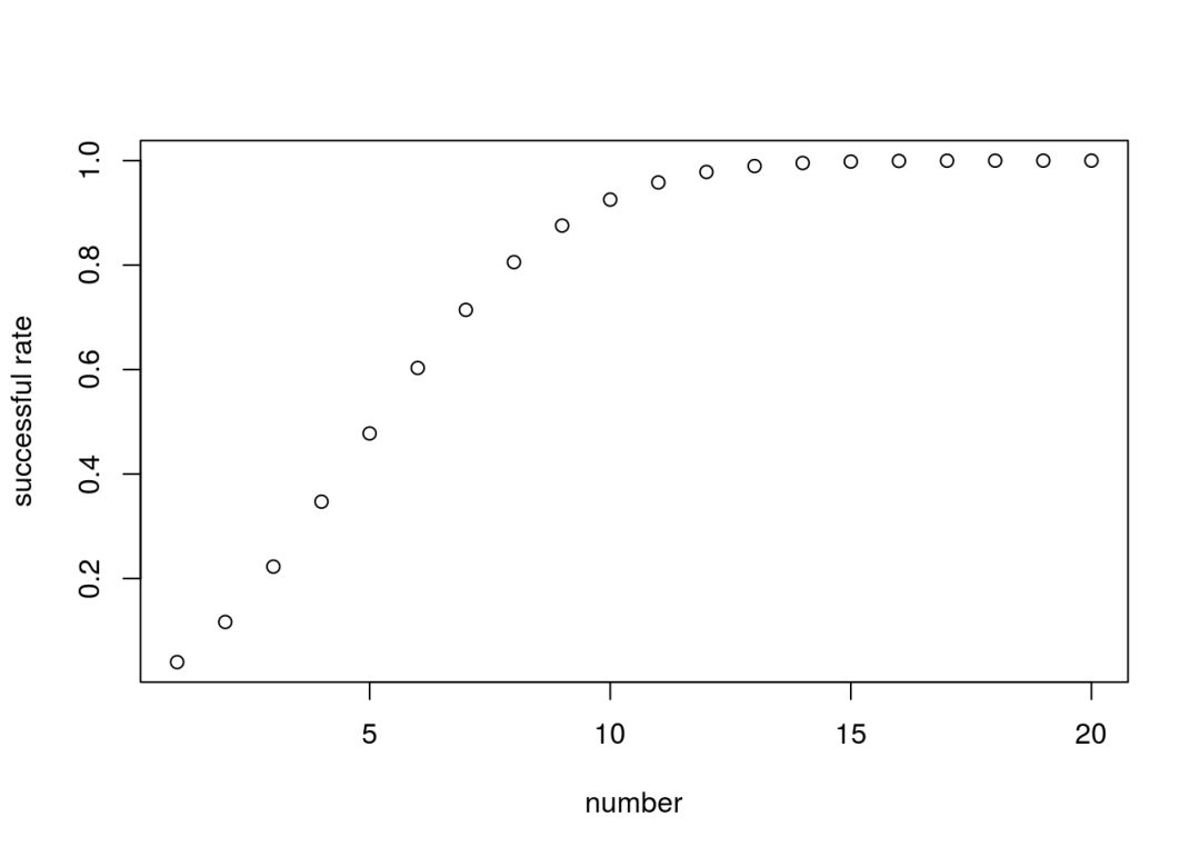 而经过计算,期望成功次数是5.9-6次的样子。基本上可以说,