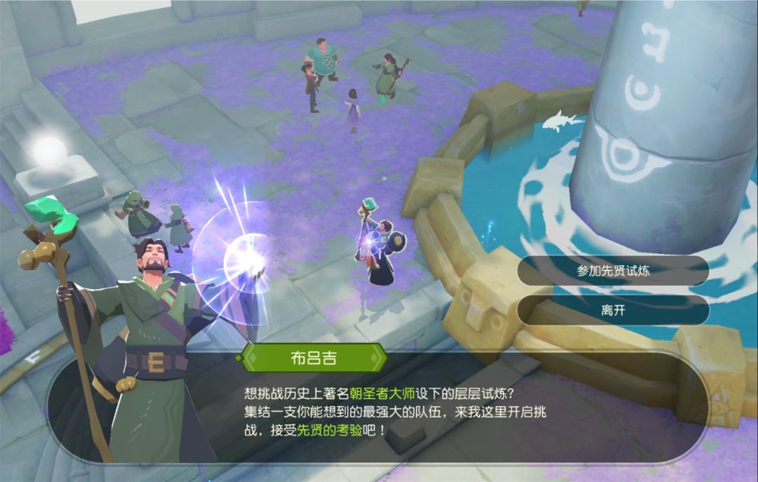集结3名以上的小伙伴,跟随队长在主城寻找“布吕吉”,与他对话,开启试炼。