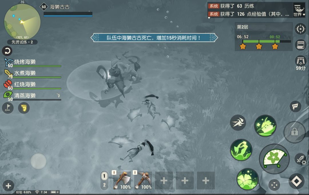 在3/6/9分钟之内通关,队伍会分别解锁向下3/2/1层试炼;