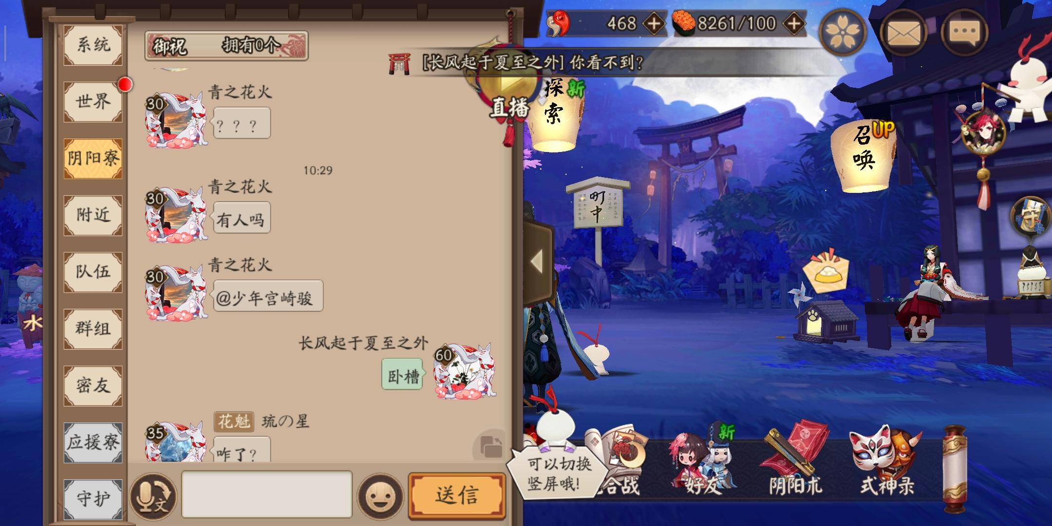 那个长风起于夏至之外是我百鬼夜行的号,这个寮频道也是百鬼夜行的寮,但是当我切换到另一个区时,如图