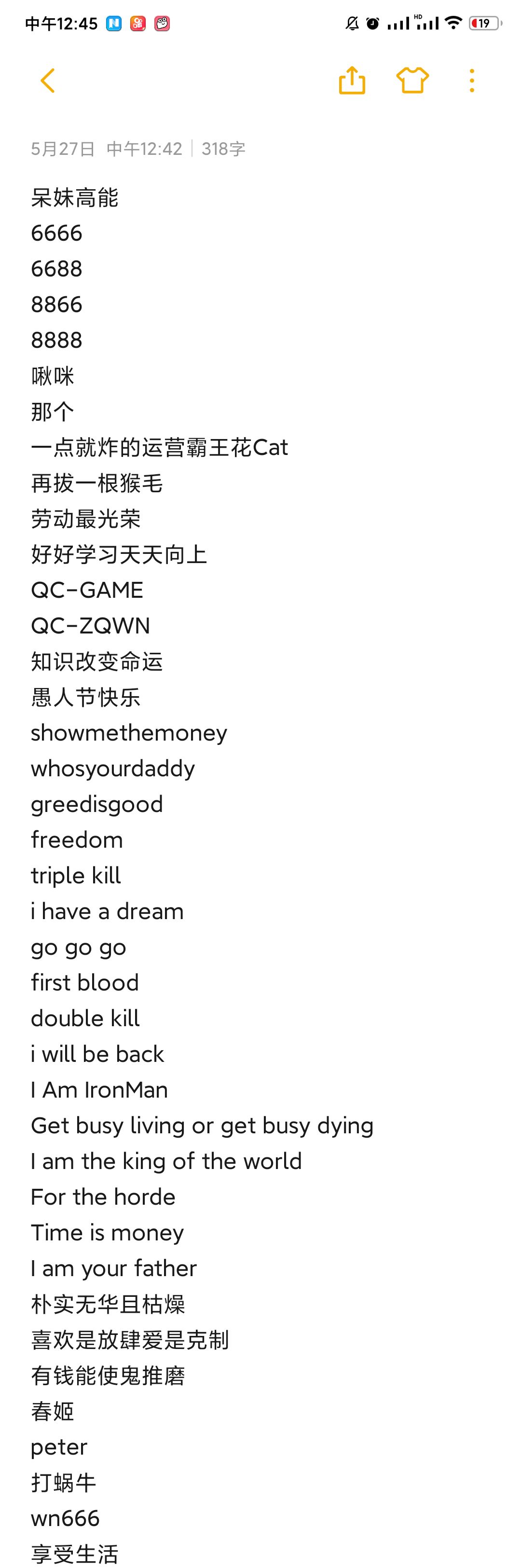 完整的密令截图有个别领不了的检查一下空格可以