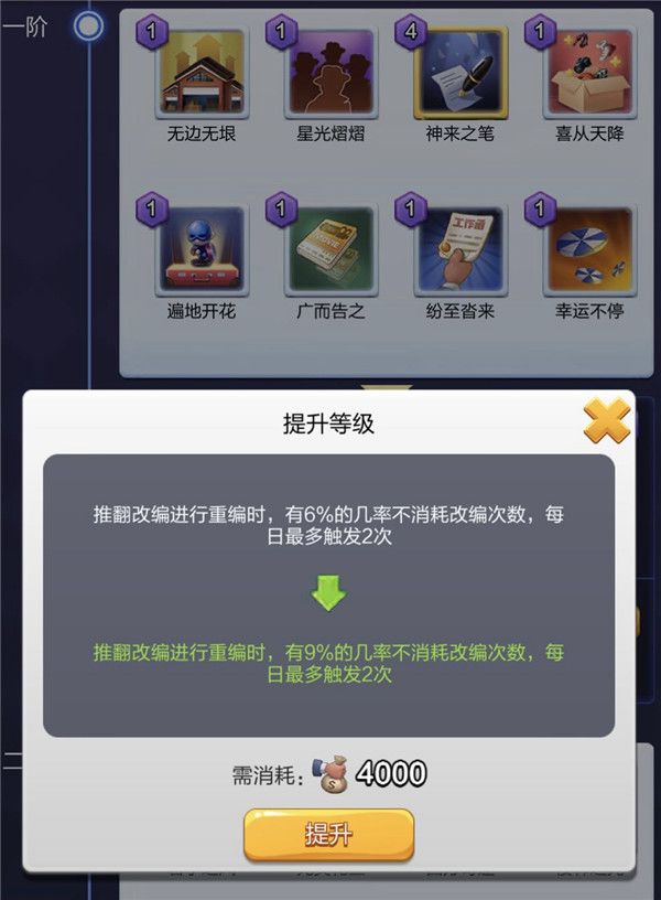 也许很多玩家朋友看不上这一点点的小福利,不过俗话说的好“水滴石穿,聚沙成塔”,Chen在猫鱼也只是升级了这两个科技,并把神来之笔升级到了2级。其它的一些科技都是比较杂的周边,宣传册等等没什么太大的用处,Chen在这里就不一一铺开来给大家介绍了。