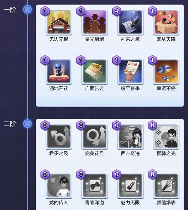 其中彩色图标显示集团董事长已经带领整个集团进行了该项科技的研发,数字则表明了当前该科技研究的等级。