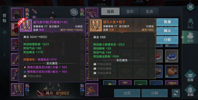 属性和品质的抉择尤为重要。如果橙色装备的属性不理想(带有精神、魔法上限这类属性),那么选择属性更好、但战力较低的紫色装备反而更好!