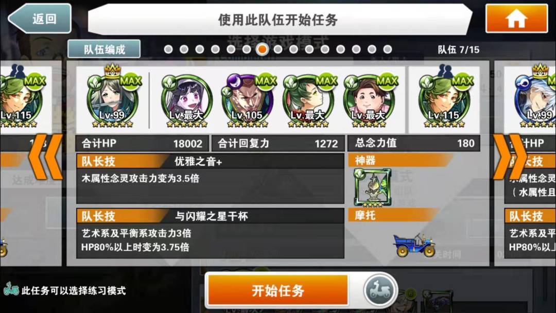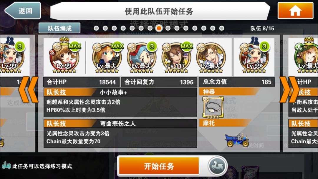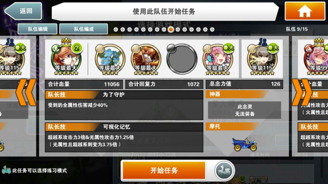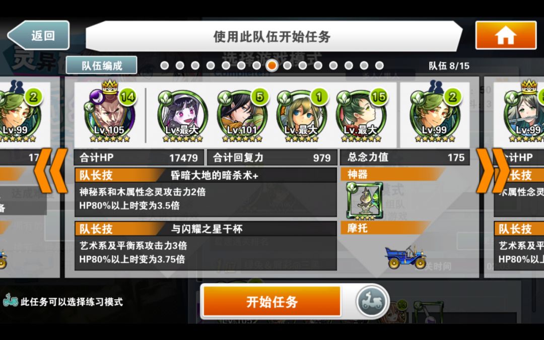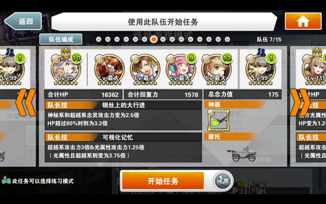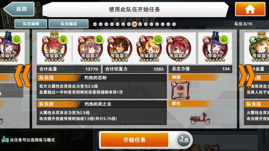 简评:本阵容的核心念灵是好友的小叶子,割血+跳C,既有输出又安全。自己的队长就尽量选高倍率神秘队长。核心思路就是停转飞(时间停止,转换颜色,飞跃一段地形)同时使用,之所以选大咸鱼作为黑飞。主要是除了提供一点可怜的输出外,最主要是两次50%减伤,毕竟用了富二代,本身队伍脆的不行。没啥好特别注意的,停转飞好了一起用收益最大。大咸鱼单用提供免伤也是不错的思路。物理学家姐姐又是奶又是2倍buff。大概在100C结束战斗,没结束也不怕,吃一次攻击再来一次停转飞,就是不缺能量球。