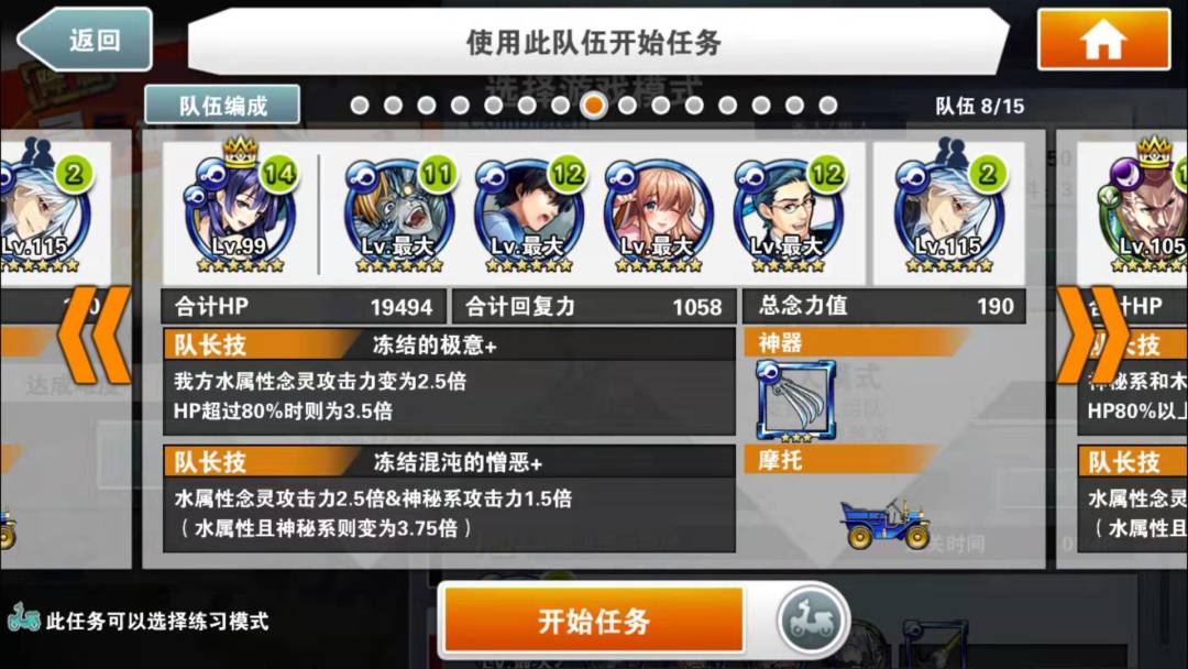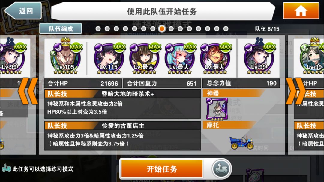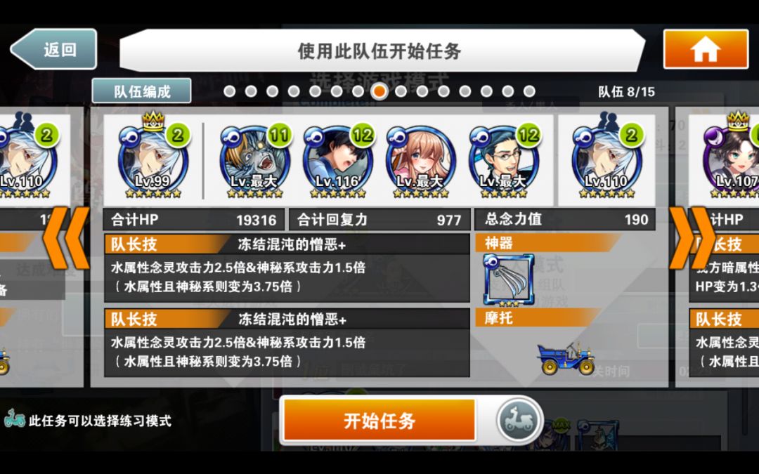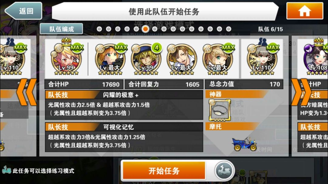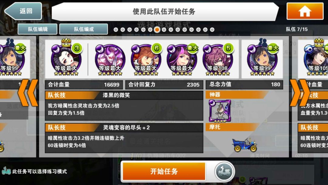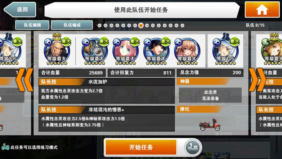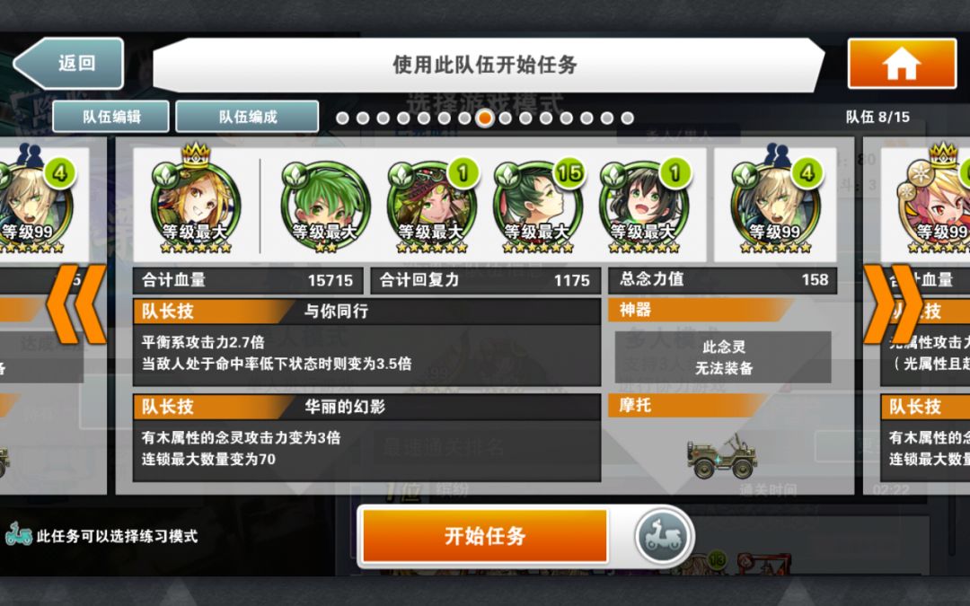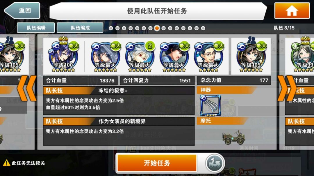 简评:此编队特色是异色暗气功师罗。因为有绿色部分,所以可以通过普通攻击直接过水墙。所有技能留在最后输出。
