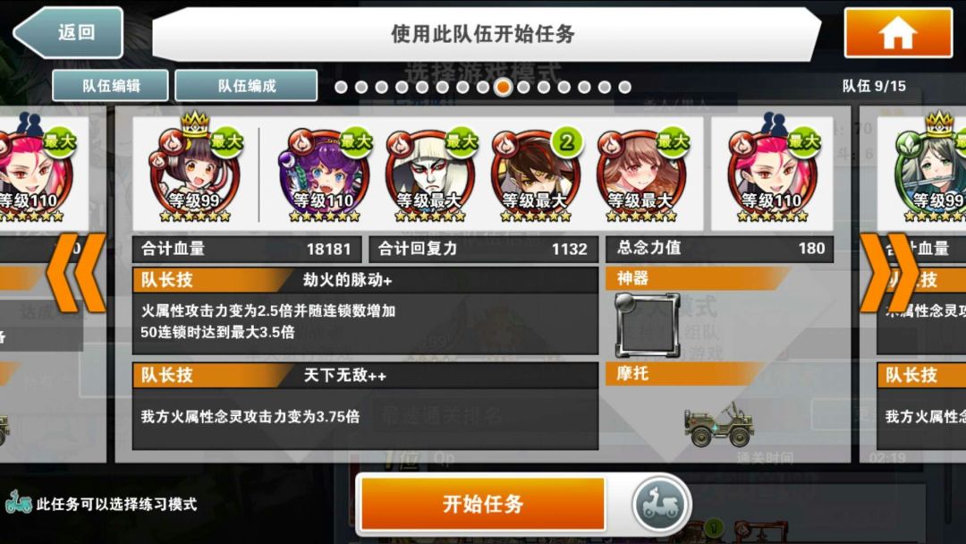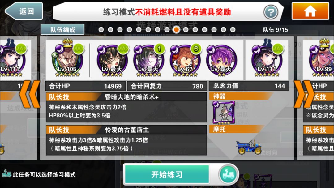简评:本降临组队核心,皇帝拿破仑。本组队核心思路,故意掉C复活奖励时间无限折返跑。众所周知,一般情况下只能跑到100C(除非开启变身),再往上就不再增加C数也不会再有奖励关和额外的能量补充了。那我还想要更多能量球怎么办?那就用到“复活当前chain数之后的奖励时间”这个技能了。具体操作是,跑到90c左右,故意撞墙掉C到40c左右,开启复活奖励时间技能,好了,你又可以开始愉快的跳c进奖励时间吃珠子了。理论上只要你技能衔接的好可以无限往返跑直到磨死任何一个boss。还等什么,快去试试你学的新技能吧。顺带一提,此降临母亲有倒计时大伤害,所以还是赶紧结束战斗吧。